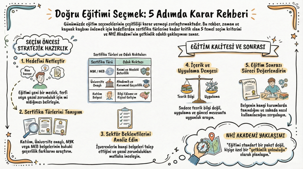 Günümüzde eğitim seçenekleri oldukça çeşitlenmiş durumda. Online programlar, sertifikalı eğitimler, kısa süreli kurslar ve resmi belgelendirme süreçleri arasında seçim yapmak her zaman kolay olmayabilir.